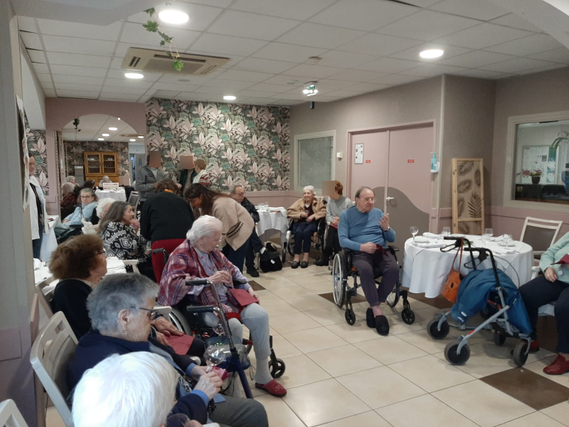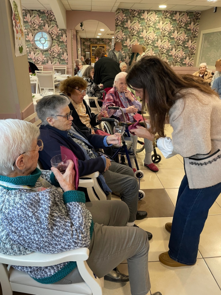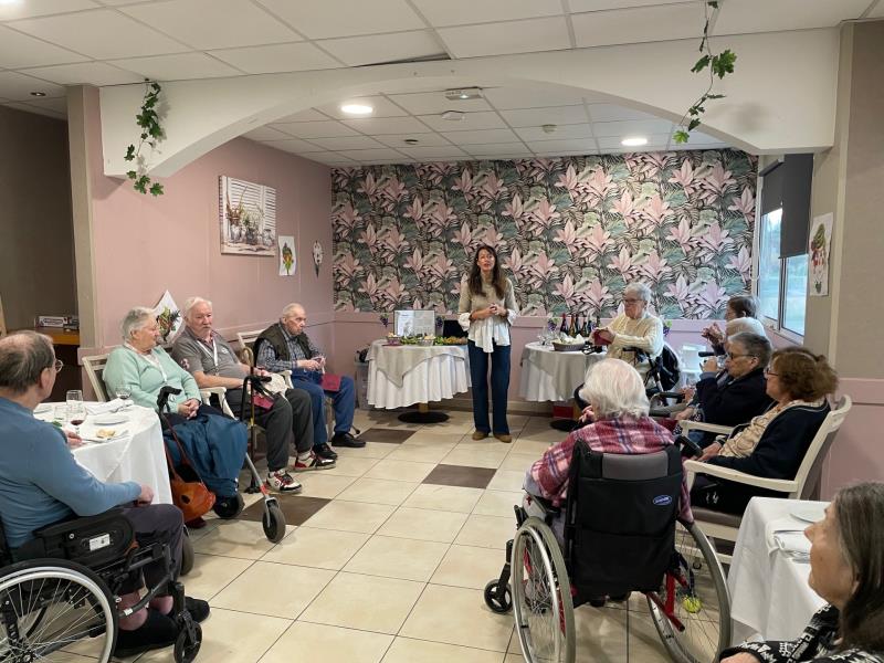 Ce vendredi, l'occasion de la sortie du Beaujolais Nouveau la veille, les résidents et les familles présentes ont pu partager un moment autour d'une dégustation de vin proposée par notre prestataire, Neosilver. Un buffet de charcuterie accompagnait le tout.