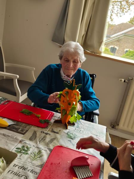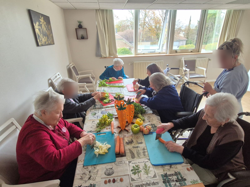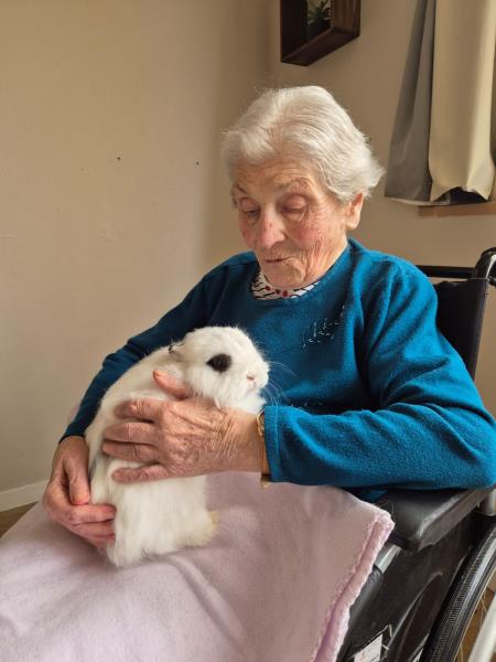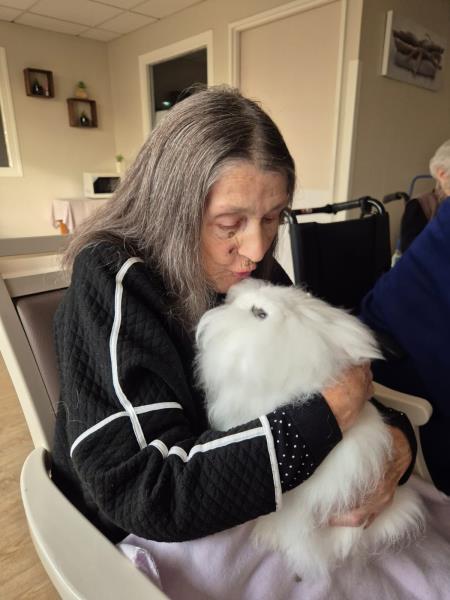 Pour cette séance, les résidents ont pu préparer des enrichissements pour les animaux puis profiter d'un moment calme et câlin avec eux.