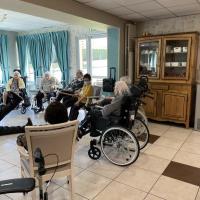Publiée le 31/03/2021Ce matin nous avons eu la visite de Locky, le chien de Mélanie notre secrétaire. Les résidents étaient ravis de pouvoir caresser cette boule de poils. Lire la suite