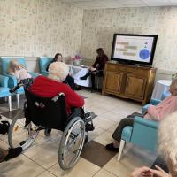 Publiée le 11/03/2021Ce matin Mélanie a mis en place une animation Wivy sur la télé les résidents ont pu répondre à des quizz sur de la géographie et sur des blinds test. Ils ont pu faire travailler leurs méninges et également s'amuser, chanter et rigoler. Lire la suite