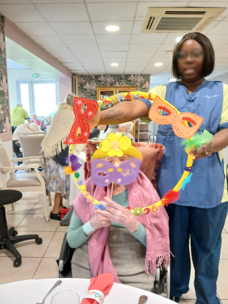 🎭 Cette semaine, nos résidents ont voyagé le temps d’un repas festif sur le thème du carnaval !