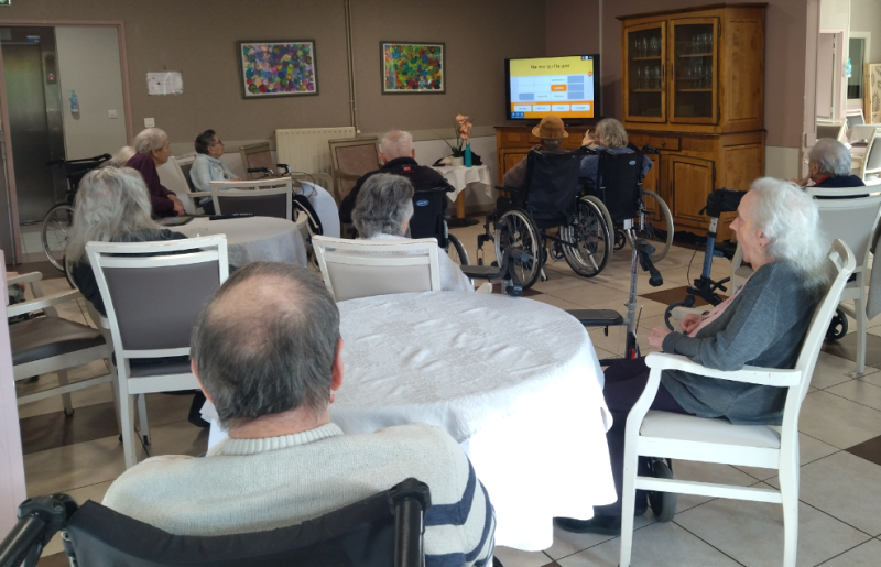 🎵Mardi après-midi, nos aînés ont participé à un jeu musical interactif grâce à la tablette d’animation.