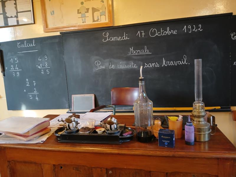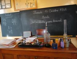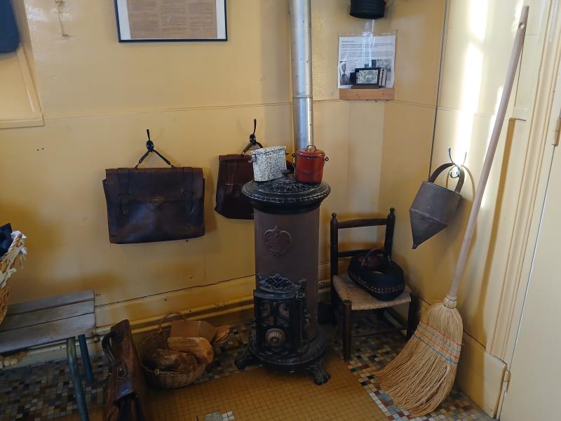 Cette ancienne école, restaurée avec soin, présente deux espaces distincts : une classe des années 1920, fidèle à l’ambiance d’autrefois avec ses pupitres en bois, ses encriers et ses cartes murales, ainsi qu’une salle plus moderne des années 1970, témoignant de l’évolution du cadre scolaire au fil des décennies.